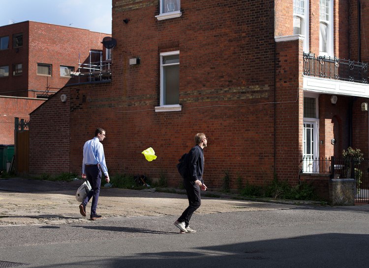 Urban life seems to consist of infinite possibilities and open spaces. Everyday life, however, consists of routine and habits. The enchantment that is hidden in every encounter and every scene often remains undiscovered. My work intends to, once more, evoke those sudden but brief moments of strangeness and enchantment. Fantasy, dreams, moment of irrationality are provoked by the artificial addition of objects such as balloons, paper, and (artificial) clouds – seemingly familiar objects from both the history of art and contemporary art. Something is both recognized and unrecognisable at the same time.
